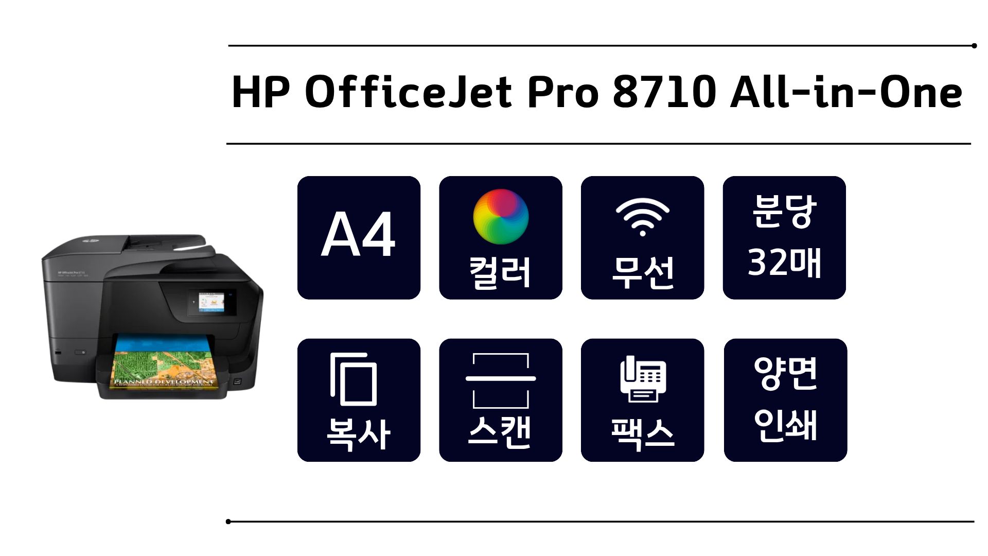 | 출력 용지함 용량 | 150매 | 양면 인쇄 | 자동 지원 |
